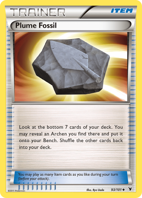 Look at the bottom 7 cards of your deck. You may reveal an Archen you find there and put it onto your Bench. Shuffle the other cards back into your deck. You may play as many Item cards as you like during your turn (before your attack).