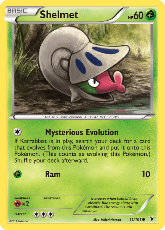 If Karrablast is in play, search your deck for a card that evolves from this Pokémon and put it onto this Pokémon. (This counts as evolving this Pokémon.) Shuffle your deck afterward.