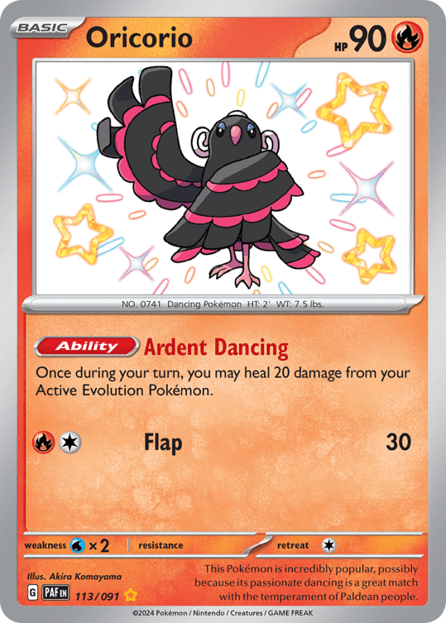 This Pokémon is incredibly popular, possibly because its passionate dancing is a great match with the temperament of Paldean people.