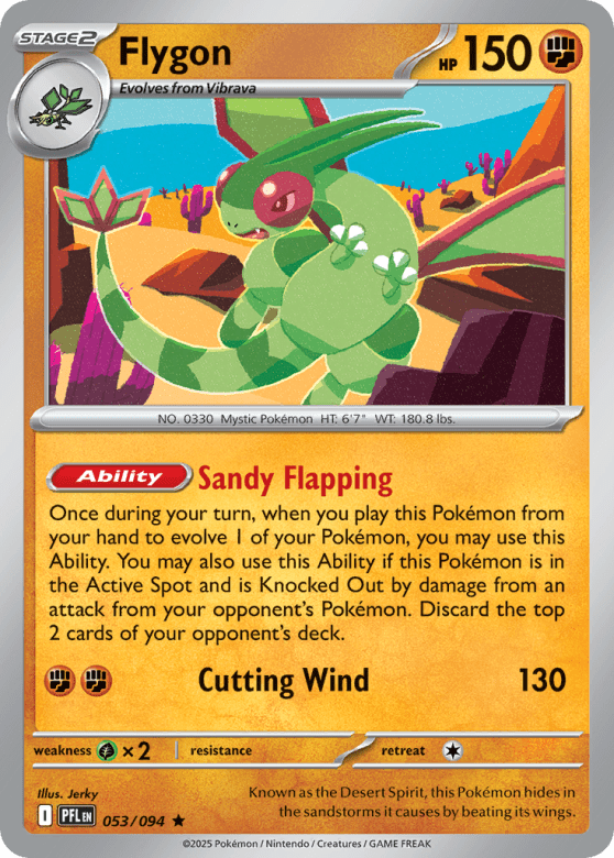 Known as the Desert Spirit, this Pokémon hides in the sandstorms it causes by beating its wings.
