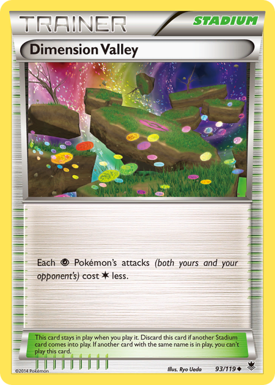 Each Psychic Pokémon's attacks (both yours and your opponent's) cost Colorless less. This card stays in play when you play it. Discard this card if another Stadium card comes into play. If another card with the same name is in play, you can't play this card.