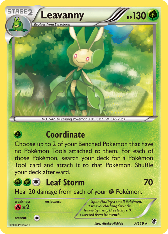 Upon finding a small Pokémon, it weaves clothing for it from leaves by using the sticky silk secreted from its mouth.