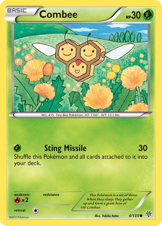 This Pokémon is a set of three. When they sleep, they gather up and form a giant hive of 100 Combee.