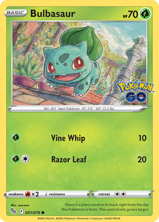 There is a plant seed on its back right from the day this Pokémon is born. The seed slowly grows larger.