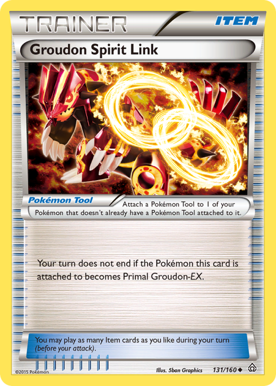Attach a Pokémon Tool to 1 of your Pokémon that doesn't already have a Pokémon Tool attached to it. Your turn does not end if the Pokémon this card is attached to becomes Primal Groudon-EX. You may play as many Item cards as you like during your turn (before your attack).