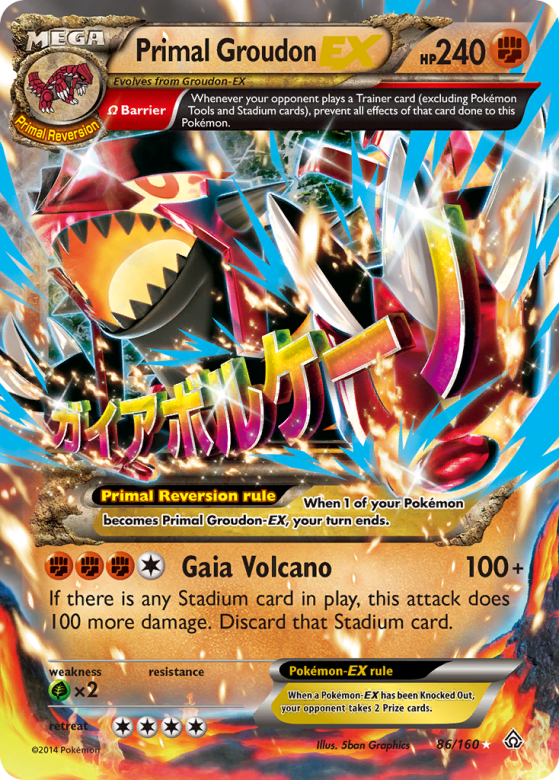 Primal Reversion rule: When 1 of your Pokémon becomes Primal Groudon-EX, your turn ends. Pokémon-EX rule: When a Pokémon-EX has been Knocked Out, your opponent takes 2 Prize cards.