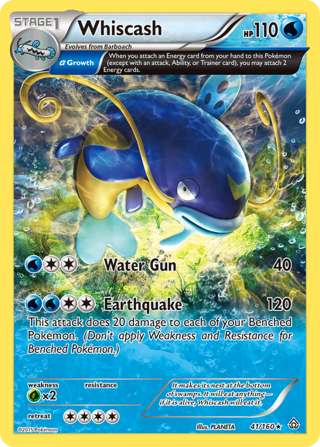 It makes its nest at the bottom of swamps. It will eat anything—if it is alive, Whiscash will eat it.