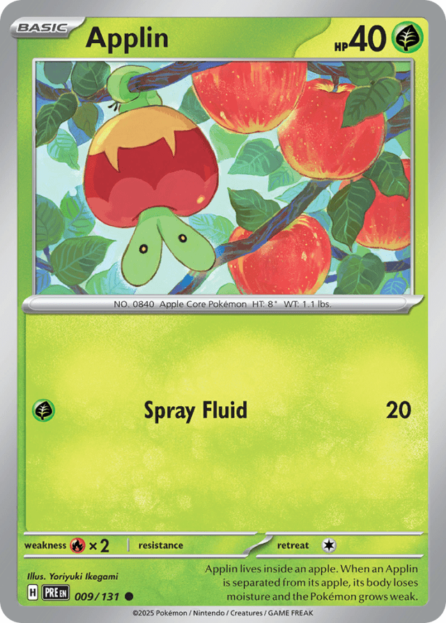 Applin lives inside an apple. When an Applin is separated from its apple, its body loses moisture and the Pokémon grows weak.