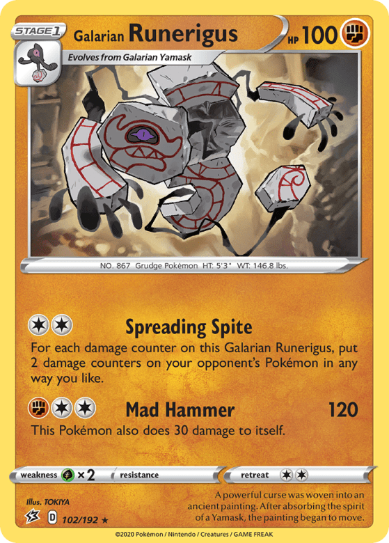 For each damage counter on this Galarian Runerigus, put 2 damage counters on your opponent's Pokémon in any way you like.