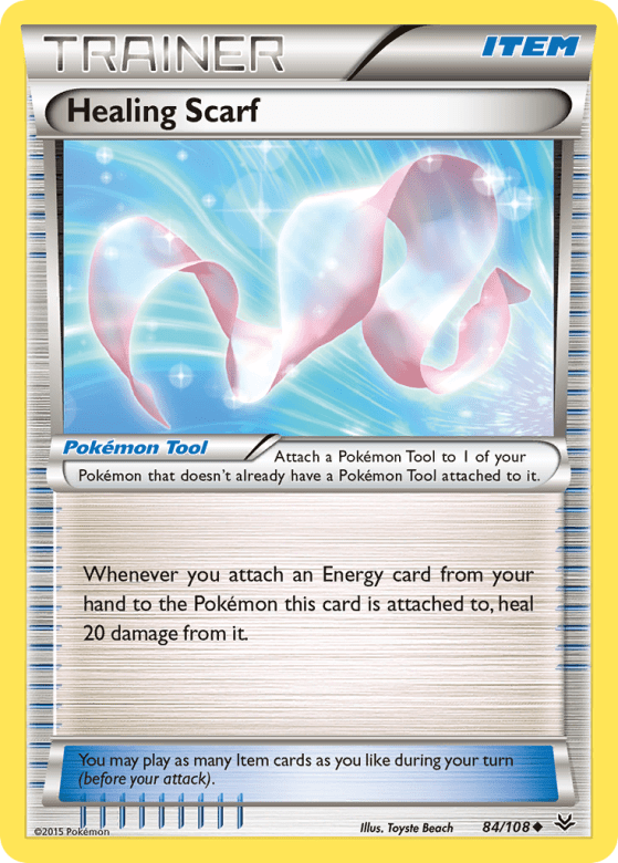 Attach a Pokémon Tool to 1 of your Pokémon that doesn't already have a Pokémon Tool attached to it. Whenever you attach an Energy card from your hand to the Pokémon this card is attached to, heal 20 damage from it. You may play as many Item cards as you like during your turn (before your attack).