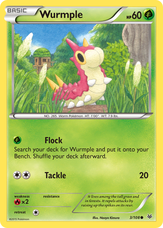 Search your deck for Wurmple and put it onto your Bench. Shuffle your deck afterward.
