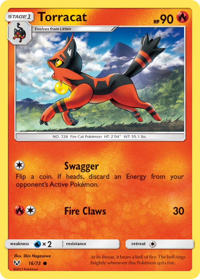 At its throat, it bears a bell of fire. The bell rings brightly whenever this Pokémon spits fire.