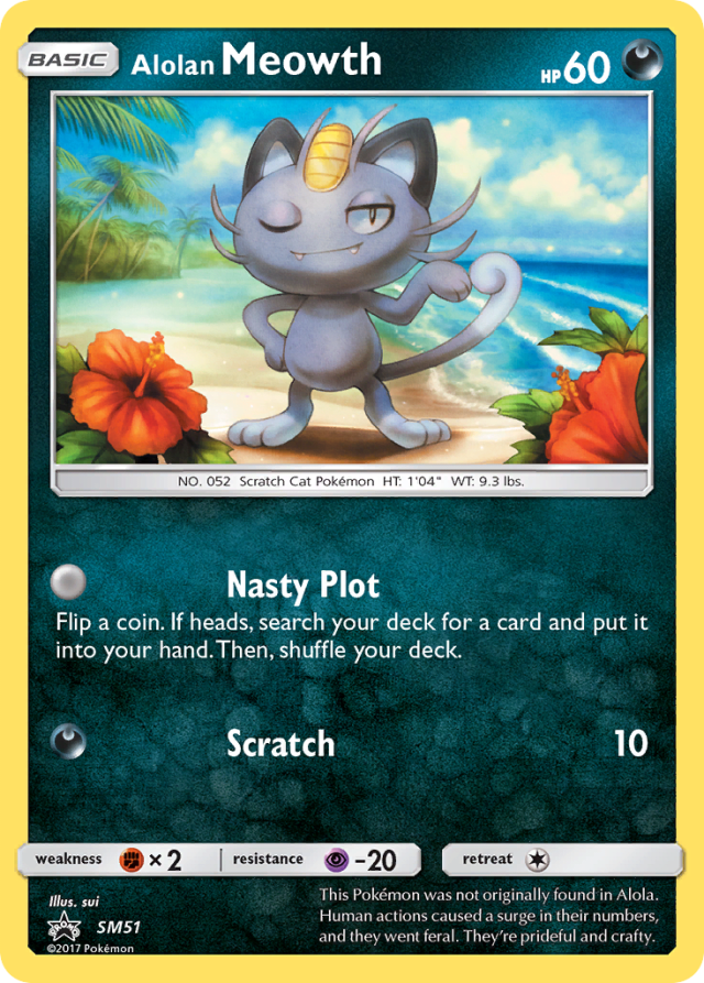 This Pokémon was not originally found in Alola. Human actions caused a surge in their numbers, and they went feral. They're prideful and crafty.