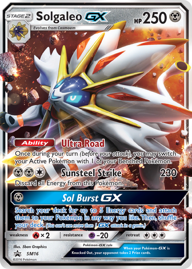Search your deck for up to 5 Energy cards and attach them to your Pokémon in any way you like. Then, shuffle your deck. (You can't use more than 1 GX attack in a game.)