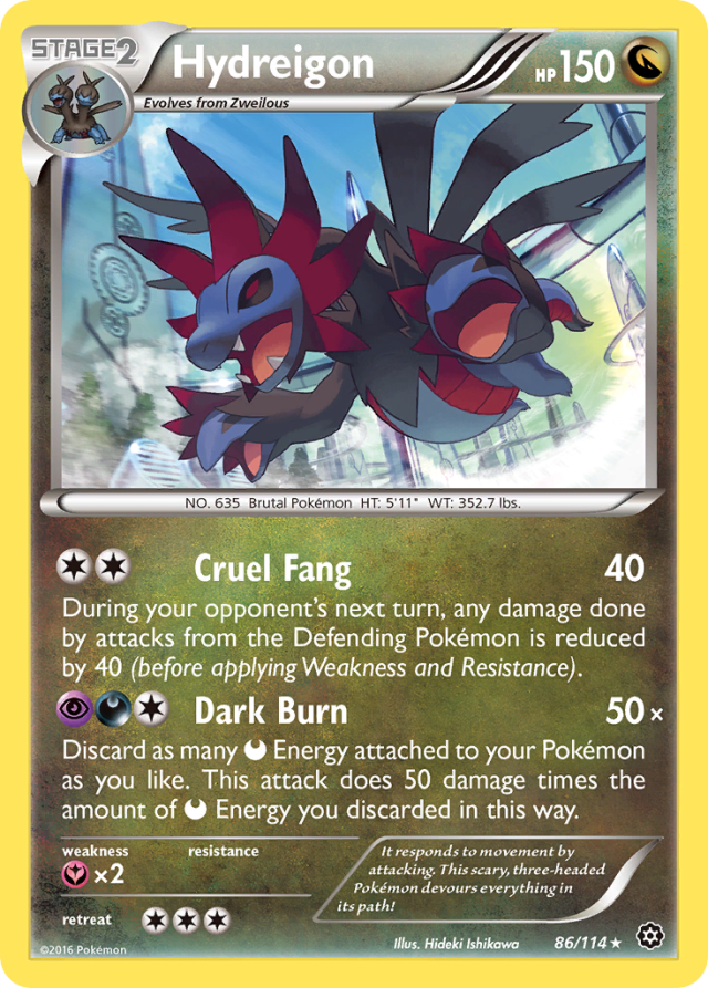 It responds to movement by attacking. This scary, three-headed Pokémon devours everything in its path!