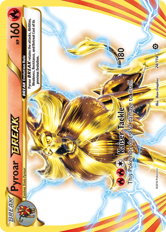 BREAK Evolution Rule: Pyroar BREAK retains the attacks, Abilities, Weakness, Resistance, and Retreat Cost of its previous Evolution.
