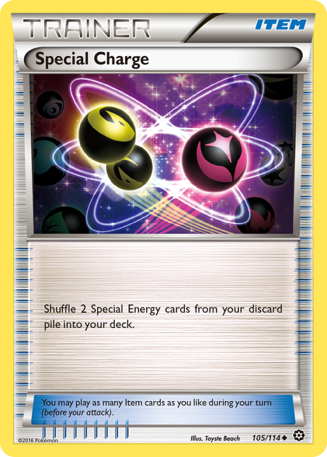 Shuffle 2 Special Energy cards from your discard pile into your deck. You may play as many Item cards as you like during your turn (before your attack).