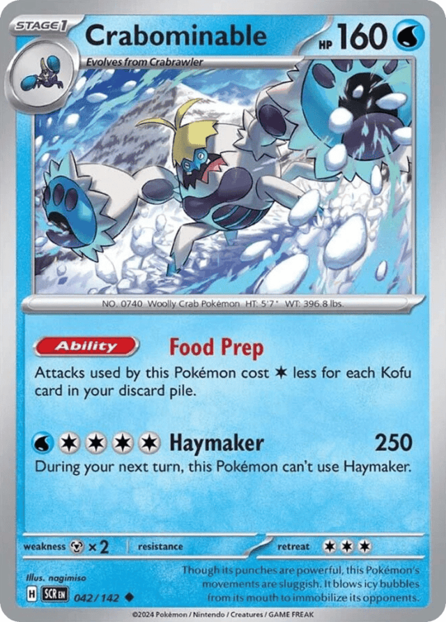 Though its punches are powerful, this Pokémon's movements are sluggish. It blows icy bubbles from its mouth to immobilize its opponents.