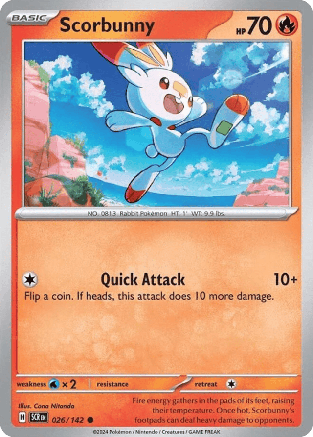 Fire energy gathers in the pads of its feet, raising their temperature. Once hot, Scorbunny's footpads can deal heavy damage to opponents.