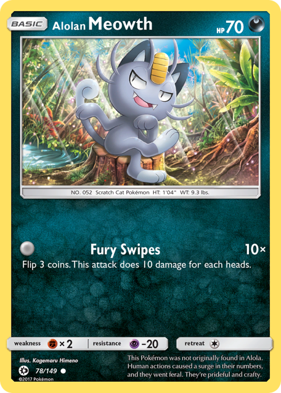 This Pokémon was not originally found in Alola. Human actions caused a surge in their numbers, and they went feral. They're prideful and crafty.