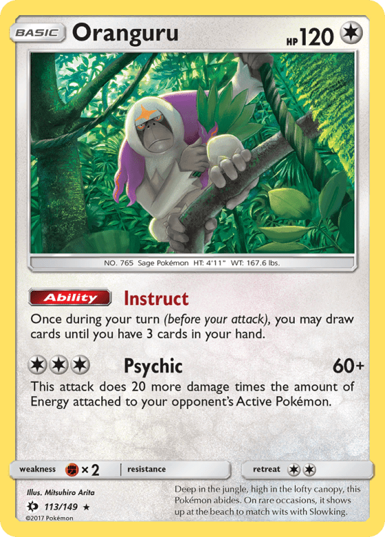 Deep in the jungle, high in the lofty canopy, this Pokémon abides. On rare occasions, it shows up at the beach to match wits with Slowking.