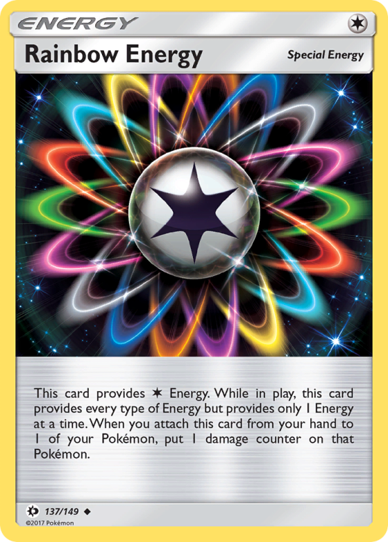 This card provides Colorless Energy. While in play, this card provides every type of Energy but provides only 1 Energy at a time. When you attach this card from your hand to 1 of your Pokémon, put 1 damage counter on that Pokémon.