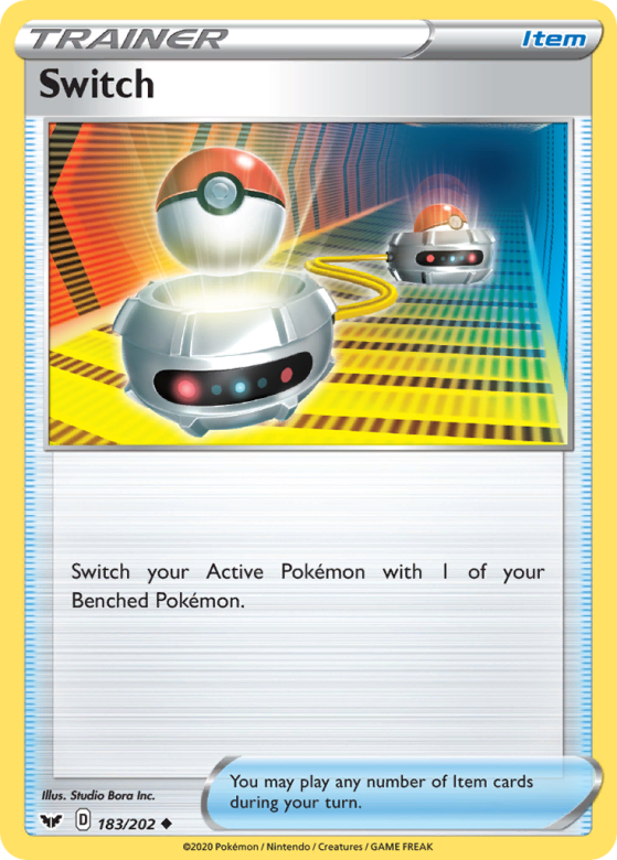 Switch your Active Pokémon with 1 of your Benched Pokémon. You may play any number of Item cards during your turn.