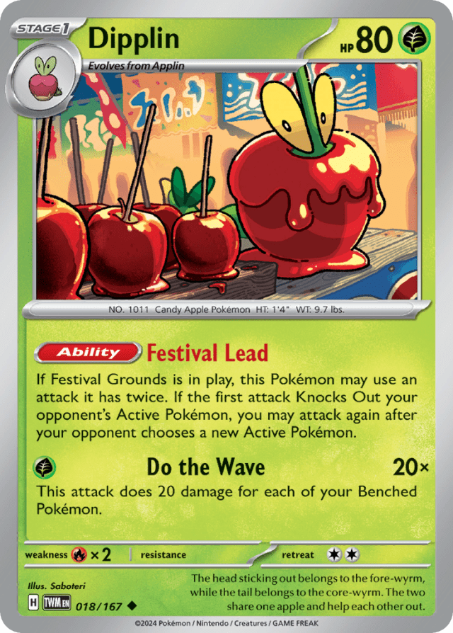 If Festival Grounds is in play, this Pokémon may use an attack it has twice. If the first attack Knocks Out your opponent's Active Pokémon, you may attack again after your opponent chooses a new Active Pokémon.