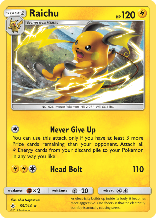 You can use this attack only if you have at least 3 more Prize cards remaining than your opponent. Attach all Lightning Energy cards from your discard pile to your Pokémon in any way you like.