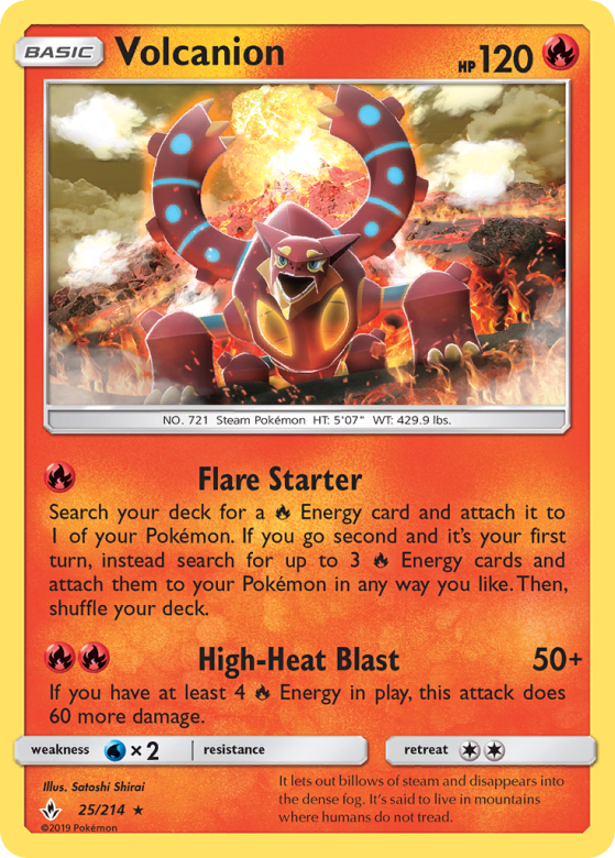 Search your deck for a Fire Energy card and attach it to 1 of your Pokémon. If you go second and it's your first turn, instead search for up to 3 Fire Energy cards and attach them to your Pokémon in any way you like. Then, shuffle your deck.
