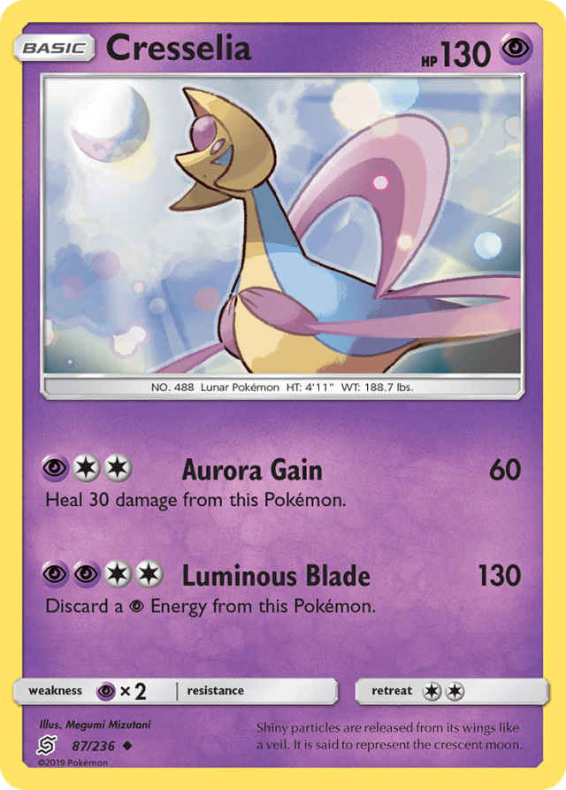 Shiny particles are released from its wings like a veil. It is said to represent the crescent moon.