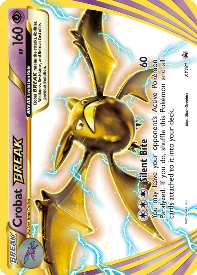 BREAK Evolution Rule: Crobat BREAK retains the attacks, Abilities, Weakness, Resistance, and Retreat Cost of its previous Evolution.