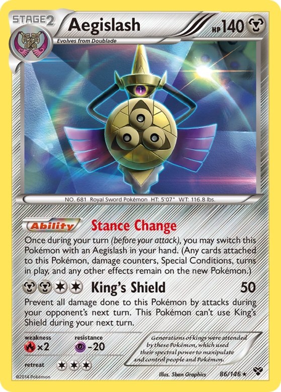 Once during your turn (before your attack), you may switch this Pokémon with an Aegislash in your hand. (Any cards attached to this Pokémon, damage counters, Special Conditions, turns in play, and any other effects remain on the new Pokémon.)