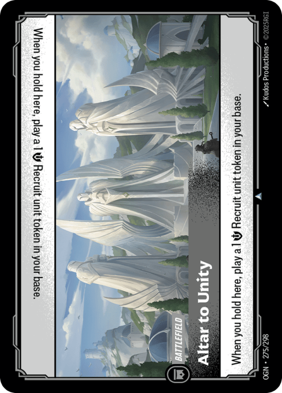 When you hold here, play a 1 {M} Recruit unit token in your base.